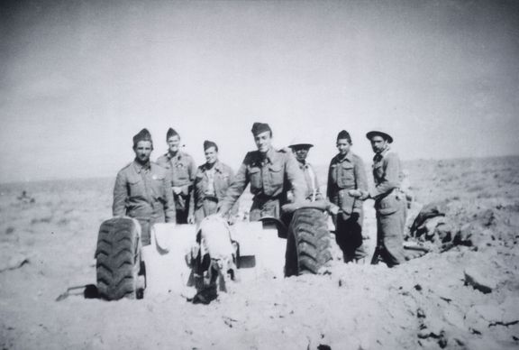 Anonyme, "Soldats du Bataillon du Pacifique posant devant un canon de 75, Bir Hakeim, mai-juin 1942" (C) Paris - Musée de l'Armée, Dist. RMN-Grand Palais / Pascal Segrette