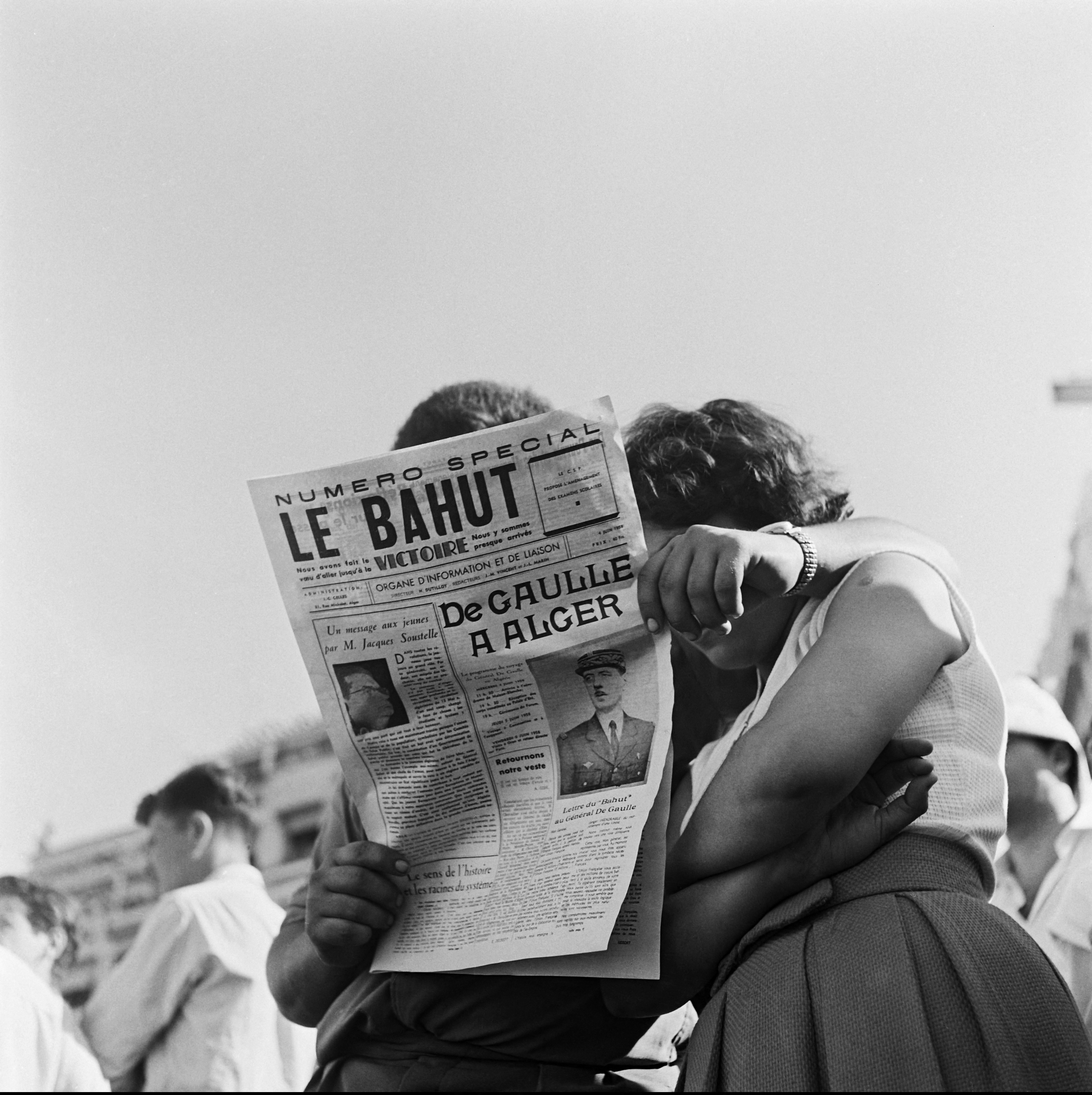 Léon Herschtritt, "Dans les rues d’Alger, les habitants lisent les journaux annonçant la visite du général de Gaulle", 1958 (C) Léon Herschtritt