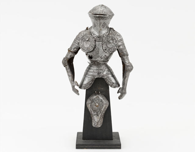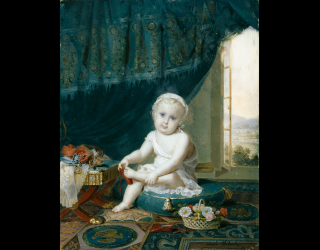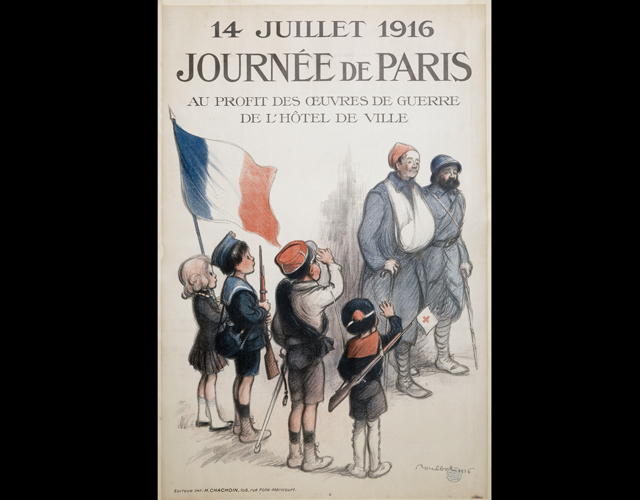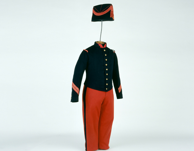 Les objets présentés ici se font l'écho des implications que les guerres ont eu sur la vie des enfants. Entre éducation militaire des princes et utilisation par la propagande, les relations entre enfance et art militaire sont diverses. L'aspect martial était des plus importants dans l'éducation princière. L'usage de la force étant une des prérogatives de l'état, il appartient au souverain d'être sensibilisé au métier des armes. Cet apprentissage se faisait tant par la voie ludique que par la voie scolaire. Lorsque les princes laissent la place aux nations, que les guerres deviennent totales, les enfants du peuple deviennent à la fois un enjeu et un instrument : l'enjeu d'une éducation qui inculque l'amour de la patrie et le sens du sacrifice, l'instrument d'une propagande qui utilise leur image pour sensibiliser les masses.