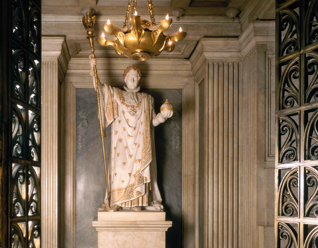 Les peintures, uniformes, armes, mobiliers, drapeaux, arts décoratifs, accessoires, équipements, animaux, sculptures... présentés dans cette sélection mettent en images ces événements ancrés dans la légende du Premier Empire. Du jeune élève Bonaparte à l'empereur déchu exilé sur l'île de Sainte-Hélène, ce portfolio vous propose donc de suivre les traces de Napoléon Ier (1769-1815) sur le site des Invalides, dans les salles d'exposition, sous le Dôme avec la présentation de son tombeau, mais également dans les « coulisses » des très riches collections du musée avec quelques pièces issues de ses réserves.