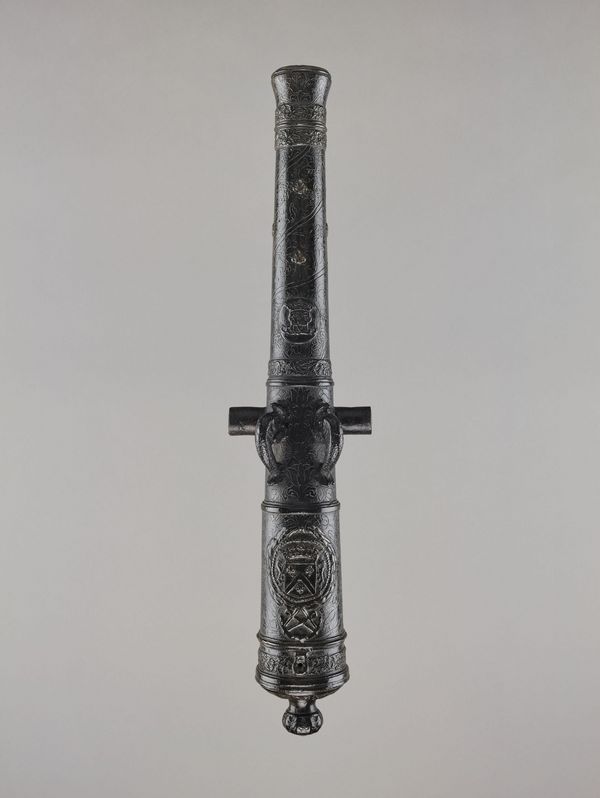Louis XV lui offre également un modèle d’artillerie. Au 18e et au 19e siècle, les modèles d’artillerie pouvaient constituer des récompenses remise après un glorieux fait d’arme ou au terme d’une carrière militaire exemplaire. Ce modèle en bronze en est le parfait exemple. Intégralement ciselé, il reprend à l’échelle du 1/6e les proportions d’une pièce de marine de 12 livres.